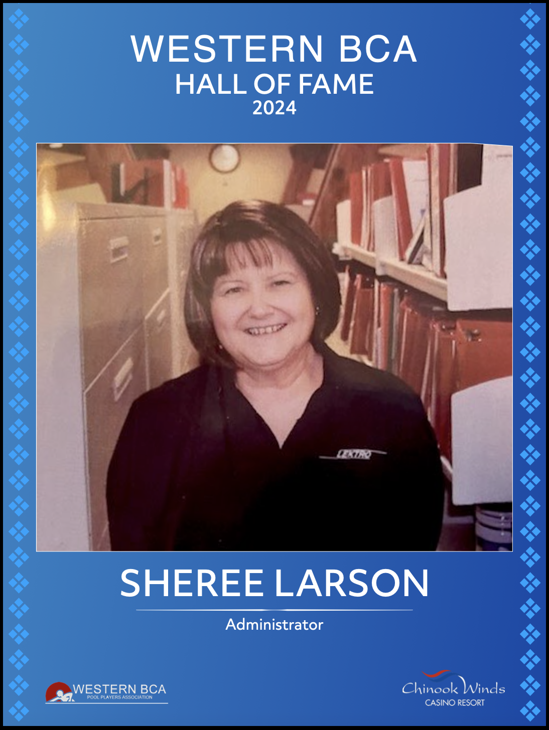 Sheree Larson was the key contributor and founder of the organization that we know of today. She helped create the organization in 1993/1994, including reaching out to Billiards Congress of America to see what it would take to bring an affiliate organization to the northwest. After a lot of planning, it all started with a tournament at Sharky’s Pub & Grub and the Cue Ball in Salem, Oregon in 1994. The 8 and 9 ball events were held together with a total of 95 entries from Oregon and Washington. In a fitting result in the 9 ball championships, Sheree Larson finished first in the women’s division. In 1995, the organization held its first large event outside of a pool hall or bar, moving the state/regional championships to Seaside, Oregon at the Seaside Convention Center, where they played both 8 and 9 ball. The first annual Western BCA Pool Players Association Regional Championships took place thereafter In 1996 at the Kelso Fairgrounds in Kelso, Washington and then eventually moving to Chinook Winds Casino in Lincoln City Oregon, where it has been held ever since. From the beginning pool player to the best players in the world, the foresight of Sheree Larson provided a backdrop and platform for all levels of players to meet all in one place and enjoy a time away from everyday life.