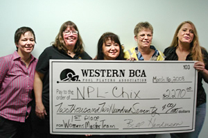 | 1st | $2270 | NPL Chix/NPL | Liz Cole, Cindy Doty, Jackie Fitchner, Mary Hopkin, Andrea Saenz-Maes | ||